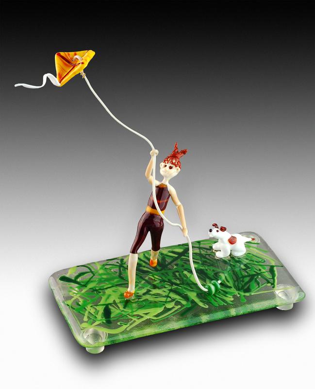 Vicki Schneider creates her collectible one-of-a-kind lampworked art by melting and manipulating solid rods of soda lime (aka "soft") glass in a propane and oxygen torch.